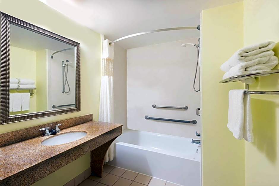 This room features a cable TV, microwave, and small refrigerator. Coffee-making facilities are also included.